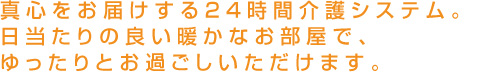 看護婦とヘルパーが心を込めて、24時間体制でお世話させていただきます。