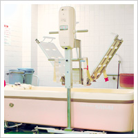 介護者の方が、快適な御入浴をしていただくために導入された特殊浴槽は、寝たままの状態で御入浴いただける機械浴槽と、ヘルパーが少し介助すれば入浴が可能な方の為の介助浴槽の2種類が用意してございます。